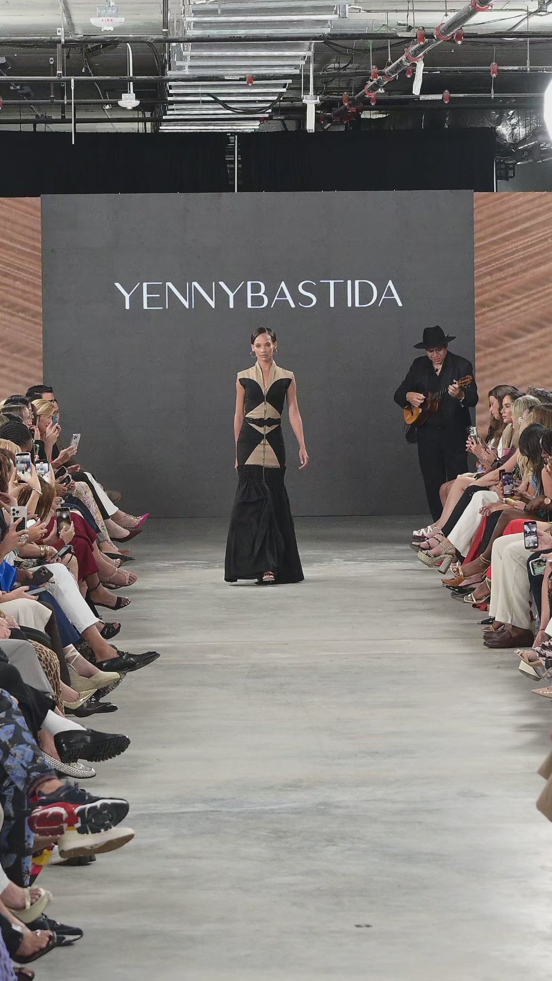 Vestido largo con múltiples cortes que simulan los dibujos y acabados laboriosos presentes en las técnicas de pintura y grabado de las vasijas tocuyanoides. En borde de la falda, una tela cocida completamente a mano con costuras en forma de acordeón prolonga el gesto artesanal. Cada detalle revela un trabajo minucioso, donde el tiempo invertido se convierte en forma de memoria.