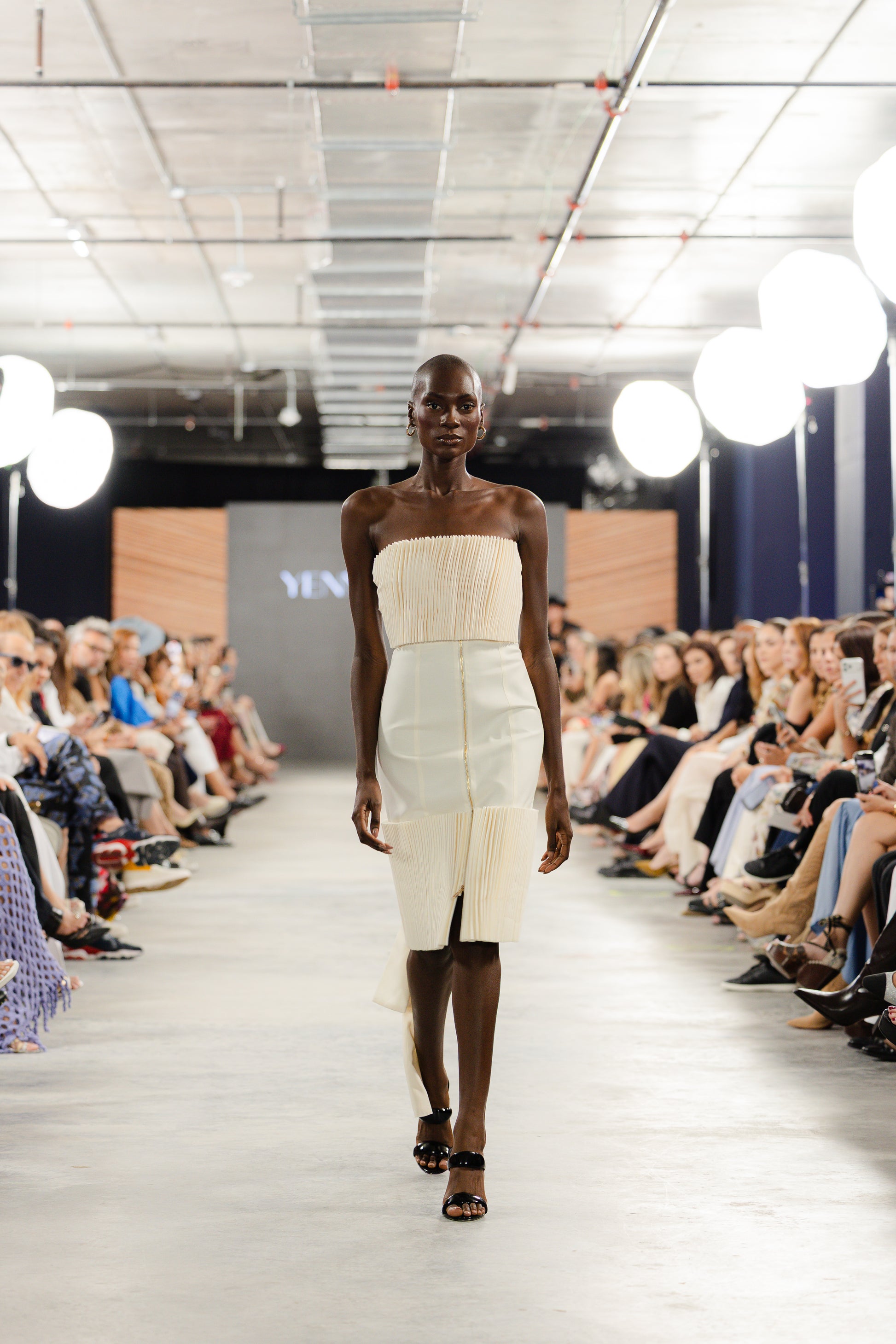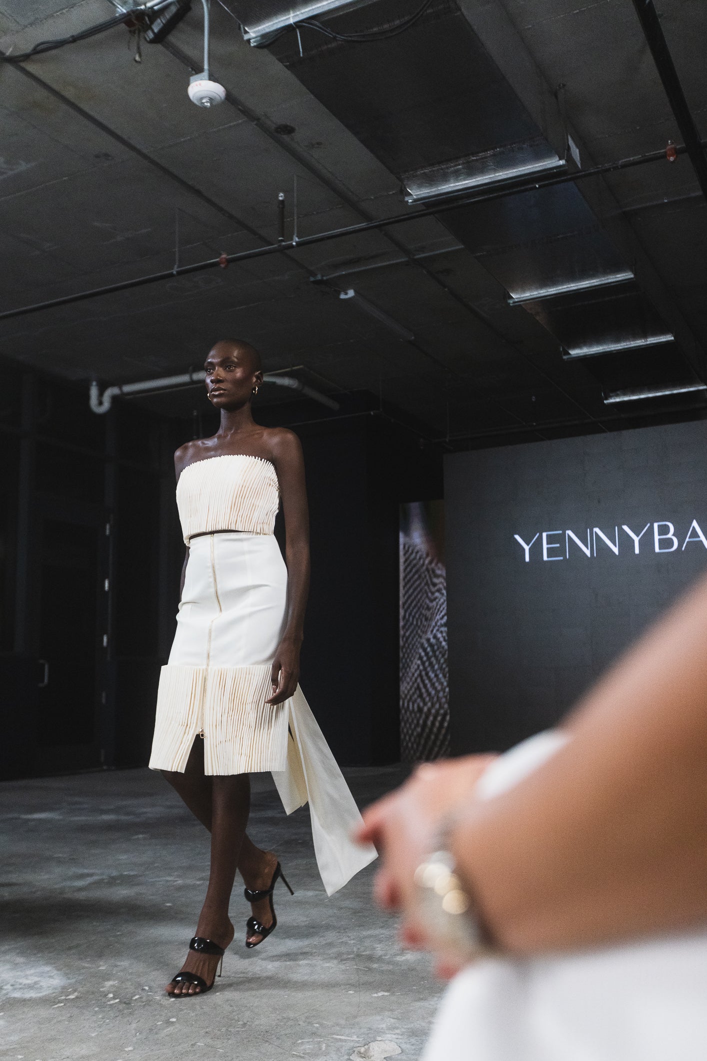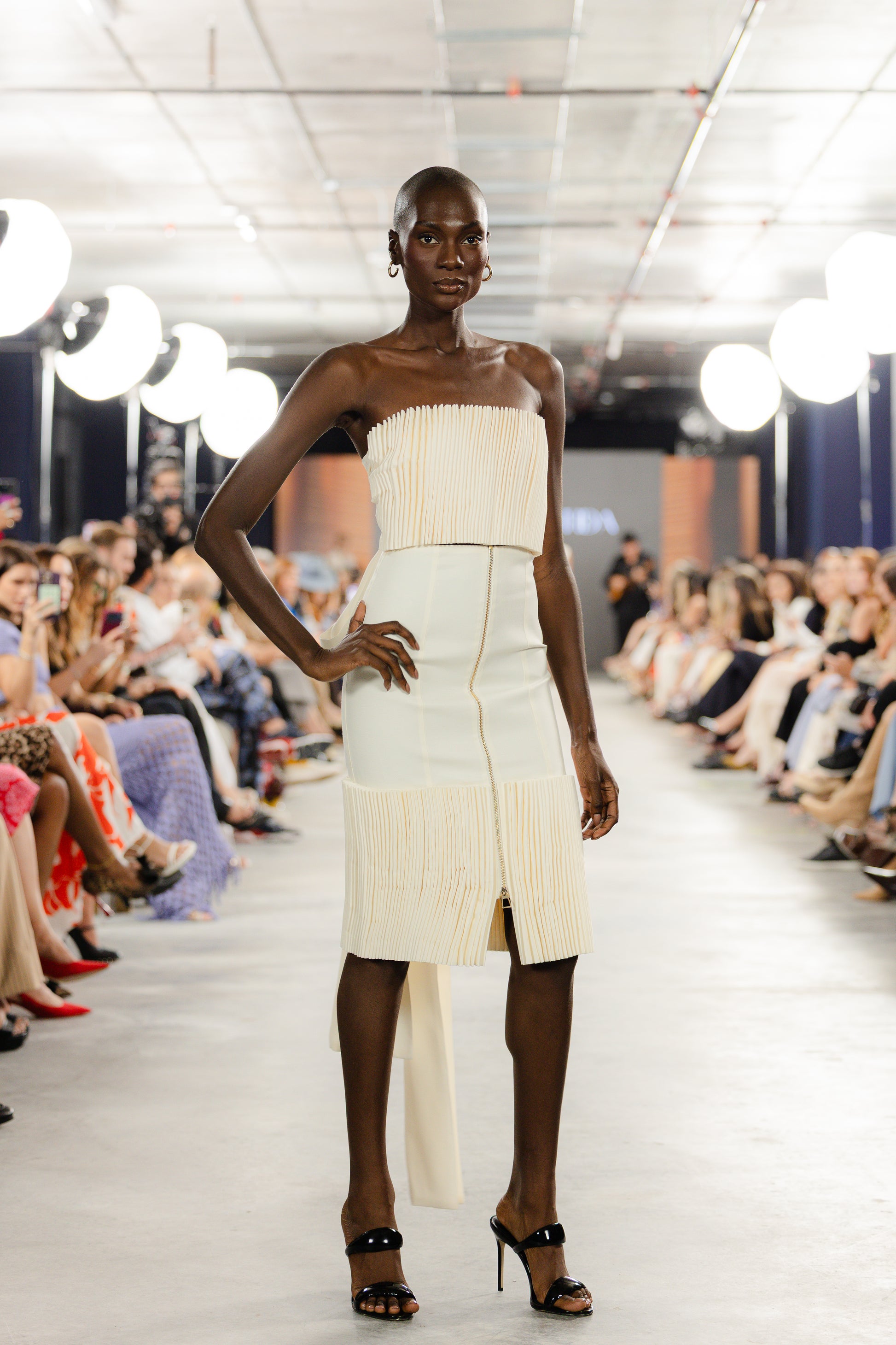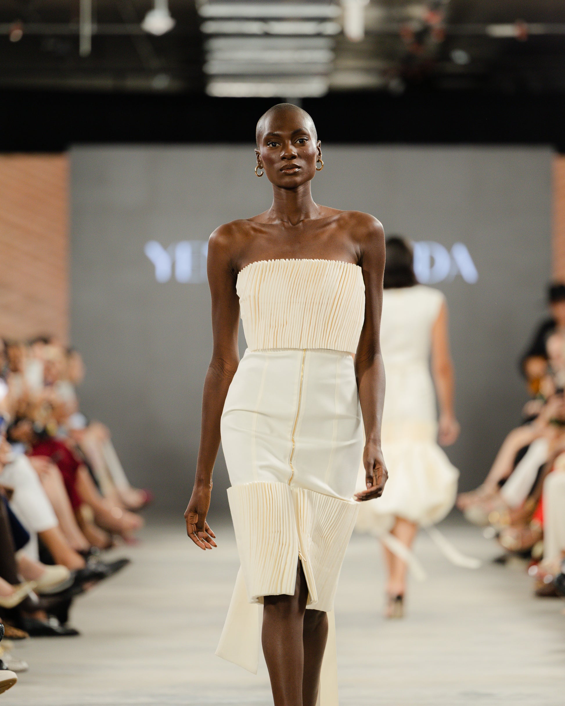 Top strapless con profuso trabajo de manipulación textil, confeccionado sobre una base estructural mediante costuras tipo acordeón que se pliegan hacia atrás. Lleva una lazada que se amarra, aportando un detalle gráfico y funcional. Una pieza que transforma la costura en volumen y el textil en forma.