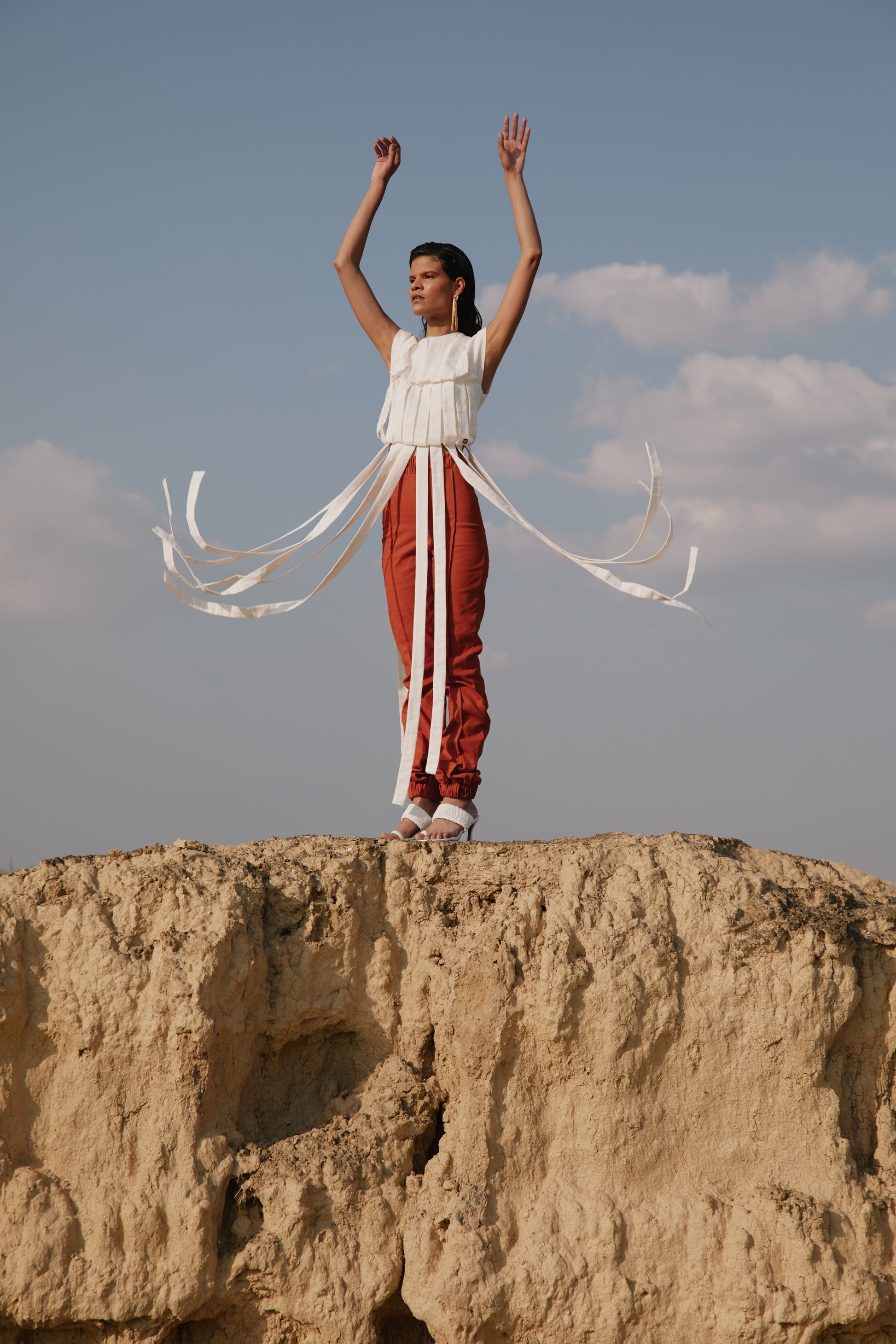 Type -type pants with waist and gummed boot. Made in drill clay.