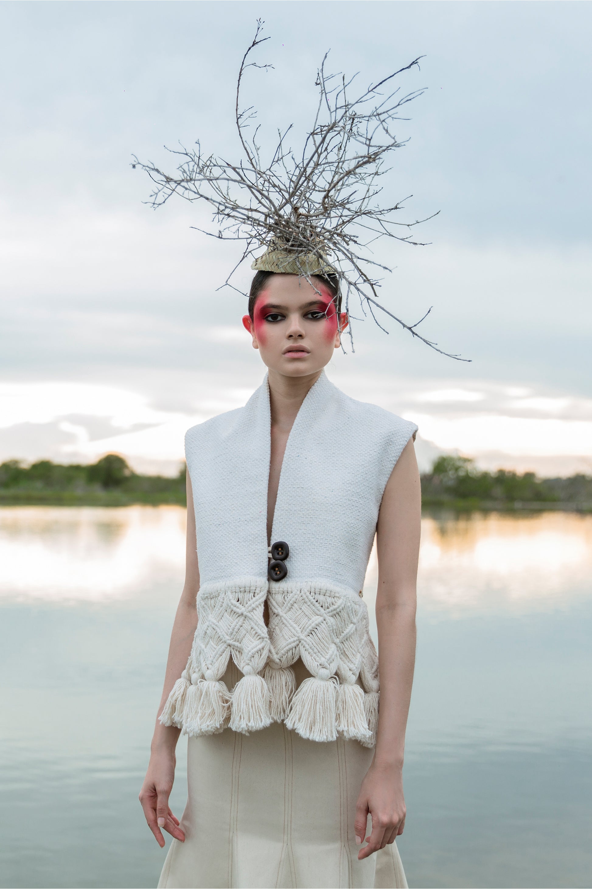 Top with a flap neckline, elastic base with drill and macramé handmade by artisans.