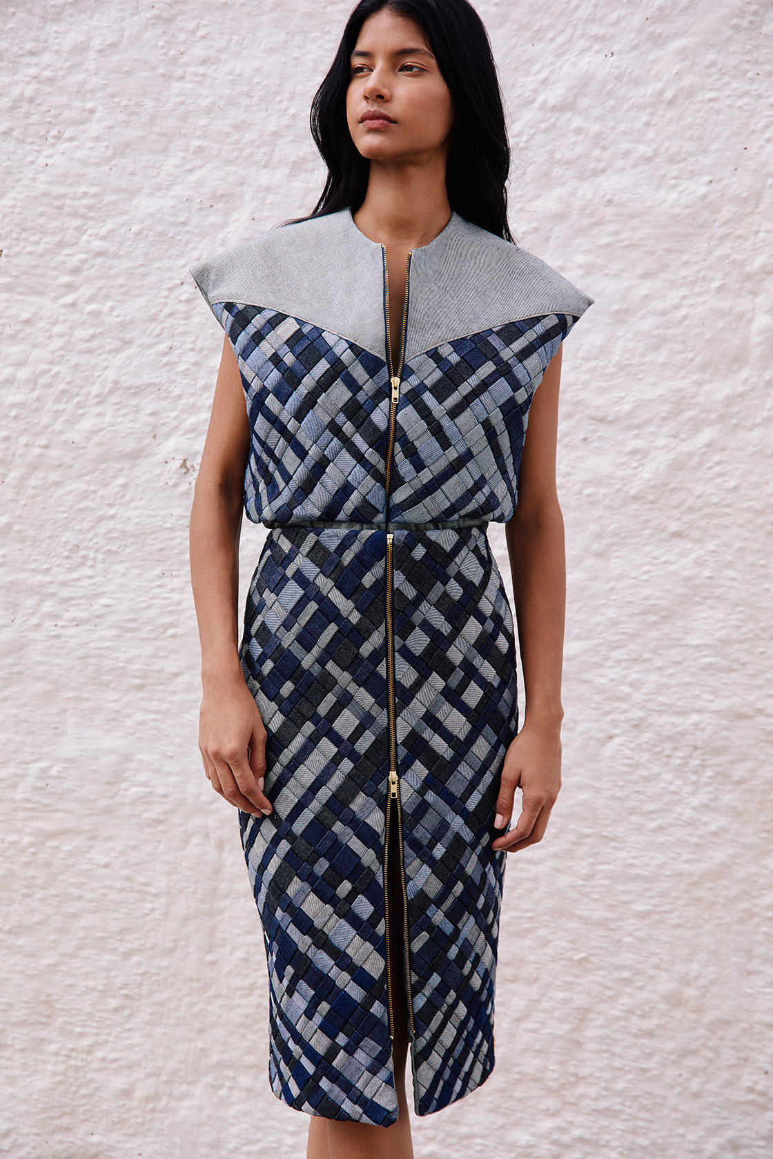 Bomber jacket in certified denim made in Venezuela, made with intricate weft fabric handmade with scraps of recycled jeans.