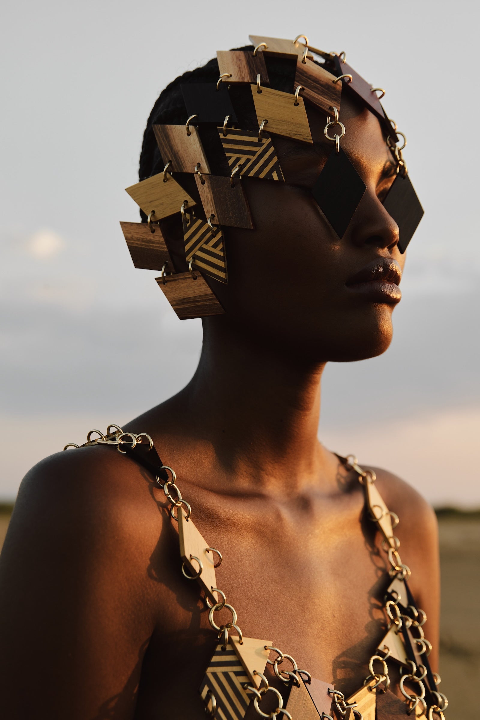 Cinturón. Pieza de elaboración artesanal con rombos de madera tallados a mano. Artesano especialista utilizó retazos de maderas tipicas de la zona para cortar y pulir cada rombo.